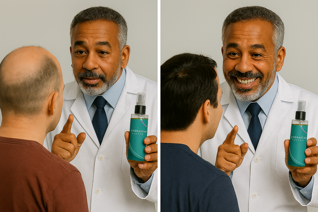 “Pri 38 letih sem imel napredovalo plešavost po letih redčenja las. Po poskusih z neučinkovitimi in dragimi zdravili sem odkril Kherastin, znanstveno dokazano zdravljenje, ki je že po prvi uporabi ustavilo izpadanje in spodbudilo rast las.
